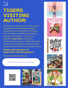Adam Rex is coming to Tanglewood on November 4th. Learn more and pre-order books HERE. Deadline to order is October 14th.